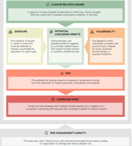 Priročnik upošteva pristop k ocenjevanju tveganj, ki upošteva sestavljene in verižne učinke izrednih vremenskih dogodkov. Na primer: suša, ki ji sledi močno deževje, lahko povzroči nenadne (hudourniške) poplave; zemeljski plaz, sprožen zaradi naliva, pa lahko zajezi reko in sproži dodatne poplave.