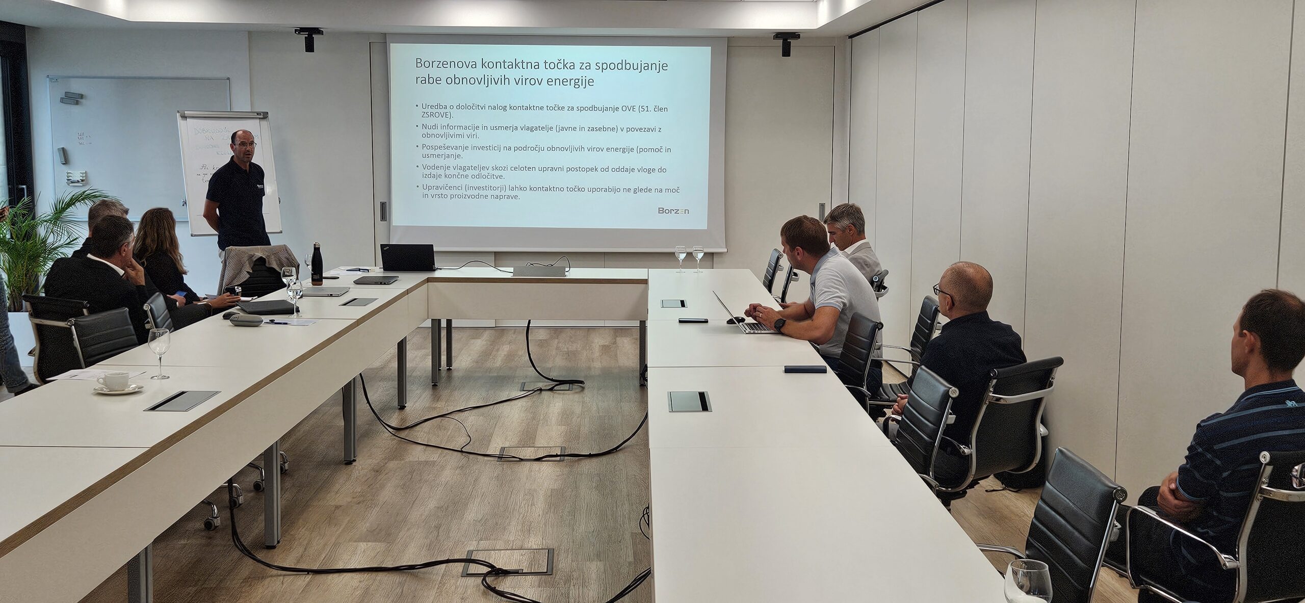 Nadalje smo prisluhnili še Antonu Marcu z Lokalne energetske agencije Gorenjske, ki je predstavil subvencije za investicije v obnovljive vire energije in kontaktno točko Borzen. Govorec je predstavil možnosti pridobivanja nepovratnih sredstev za investicije v nove proizvodne naprave (sončne elektrarne, vetrne naprave, naprave na biomaso, bioplin, toplotne črpalke ipd.) in hranilnike energije. Skupaj smo si ogledali aktualne javne pozive, višino razpoložljivih sredstev in pogoje za pridobitev pomoči, pri čemer je izpostavil razliko v intenzivnosti sofinanciranja glede na velikost podjetja.