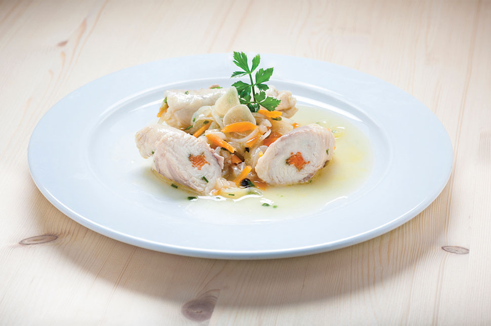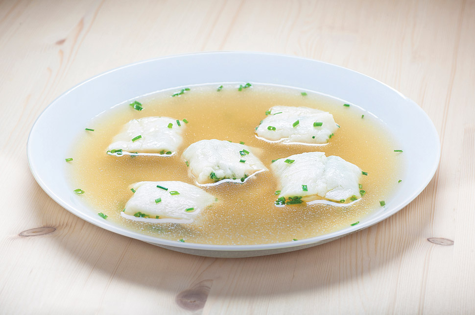 Domača goveja ali kokošja juha je bila včasih na jedilniku le ob nedeljah in praznikih, zlasti kurjo juho so postregli tudi porodnicam in bolnikom. Nedvomno pa je juha ena od klasik družinskih nedeljskih kosil na Loškem tudi dandanes. Juha je ponavadi obogatena z različnimi jušnimi vložki in zakuhami, katerim so lahko zaradi posebnega okusa dodana tudi zelišča z domačega vrta. Eno izmed njih je tudi drobnjak, ki smo ga kot nadev vključili v majhne štrukeljčke, ki se veselo poigravajo na krožniku in čakajo, da jih zajamete.