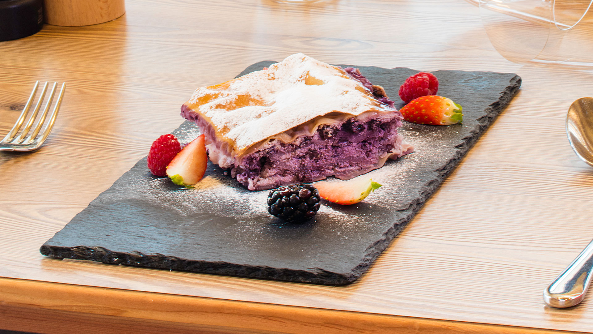 Vlečeno testo lahko pripravimo sami, bolj preprosto in hitreje pa je, če uporabimo že pripravljenega. List vlečenega testa razgrnemo, premažemo s stopljenim maslom in nanj položimo še drugi list testa. Čez celotno testo enakomerno namažemo skutin nadev in potresemo z borovnicami. Štrudelj zvijemo v štruco in položimo v namaščen pekač. Preden ga damo v pečico, ga dobro premažemo z raztopljenim maslom.